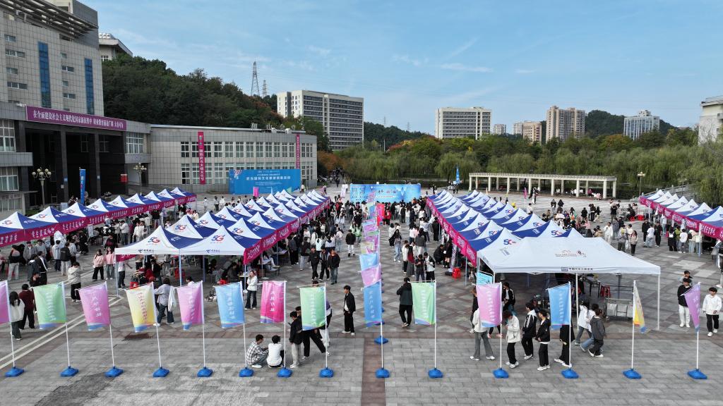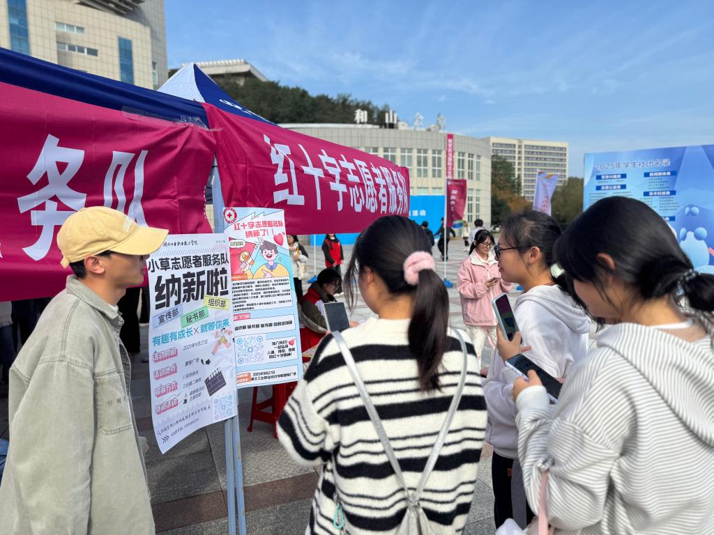 新闻网讯(文/郑丽琼 图/杨学全 张士于)悦己青春,越己社团。10月26日,由校团委主办,校青协、校学生会社团管理部承办的2025年学生社团集中宣传纳新活动在慧智广场举行。全校七个类别62个社团齐聚一堂,通过丰富多彩的展示形式,吸引了众多2025级新生驻足咨询、踊跃报名。