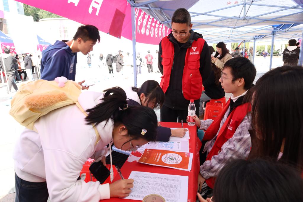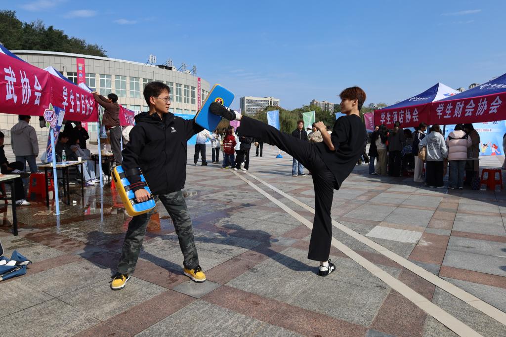 红十字志愿服务队的成员们热情地解答着关于志愿服务、无偿献血、应急救护培训等问题,吸引了一批心怀热忱、志在奉献的新生力量加入;学生CAD协会的展台别具一格,展示了由学生自主设计制作的精美建筑模型,每一个细节都体现了设计者的巧思与扎实的专业技能,激发了众多新生的浓厚兴趣;学生酒店协会展位香气四溢,同学们制作酥脆可口的蛋挞和温暖香甜的热饮,供来往师生免费品尝,专业的展示让新生们在甜蜜中感受到酒店管理专业的魅力与实操乐趣;学生尚武协会的成员带来刚柔并济的武术表演,一招一式虎虎生风,展现了中华武术的博大精深;学生自由者轮滑协会的成员们如风般穿梭,灵动的身影与矫健的身姿,将速度与技巧完美结合,吸引了大量同学驻足观看体验;天一乐团展位前动人的旋律响起,学生们不约而同地涌向表演区,主唱与乐手之间默契的互动引发阵阵欢呼......