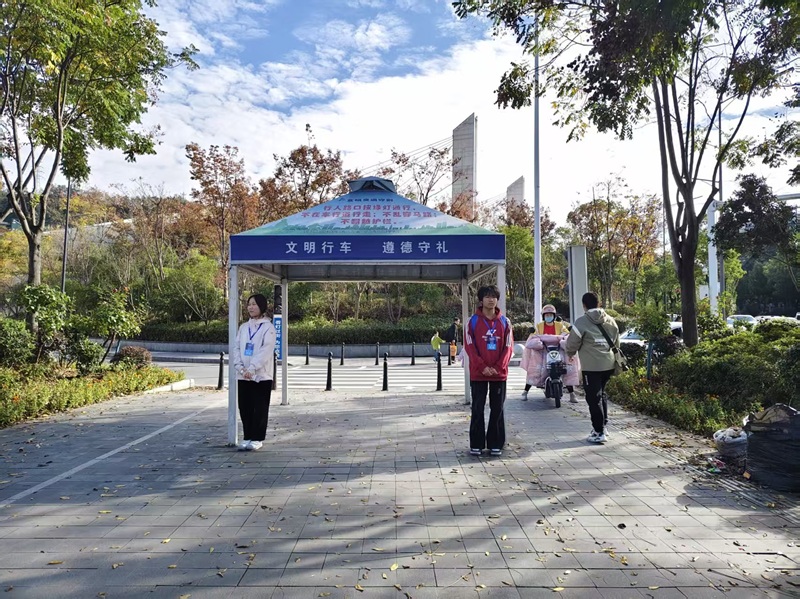 应十堰市体育局邀请,校团委、青年志愿者协会在校内广泛动员、层层筛选,最终选派80名政治素质高、服务意识强、综合素质突出的学生参与本次志愿服务。志愿者们于11月8日早晨便陆续抵达十堰体育中心,接受岗前培训后,迅速投入到会场布置、现场观众引导、秩序维护、区域指引等各项工作中,始终以饱满的热情和严谨的态度坚守岗位,成为赛场外一道亮丽的风景线。