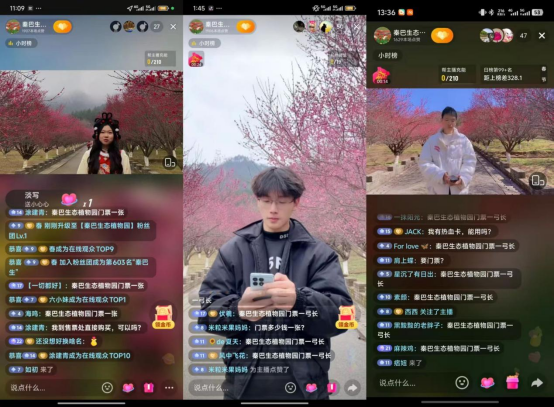 本次实践活动自1月21日启动,至2月25日圆满收官。团队累计开展专题直播20场,场均时长2小时,实现场均曝光人数1.8万人次、场均点赞1.4万次,以高频次、专业化直播为景区注入强劲流量活力。实践中,团队聚焦秦巴植物园花卉景观、植物科普等核心内容,打造固定直播栏目,通过短视频账号联动引流、多平台同步宣推,构建起内容专业化、运营常态化、推广多元化的宣传体系,有效带动景区苗木、门票咨询量显著提升,切实以直播电商助力兴旅游惠民。