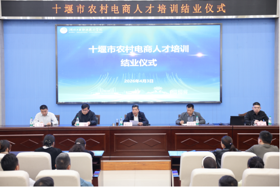 新闻网讯(文/蒋晴 图/李鑫 余杭利)4月3日下午,由十堰市农业农村局主办、湖北工业职业技术学院旅游商贸学院承办的全市农村电商人才培训班,在学院学术报告厅圆满落下帷幕。来自全市各县市区的159名学员顺利完成三天半的集中学习,获得结业证书。市农业农村局党组成员、市水产局局长陈少斌出席结业仪式并讲话。