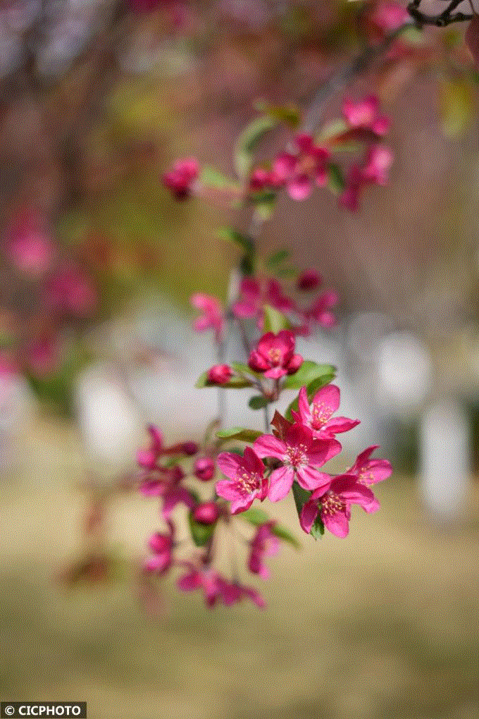 ↑2026年3月28日在位于湖北省十堰市的湖北工业职业技术学院拍摄的海棠花。CICPHOTO/章新俊 摄