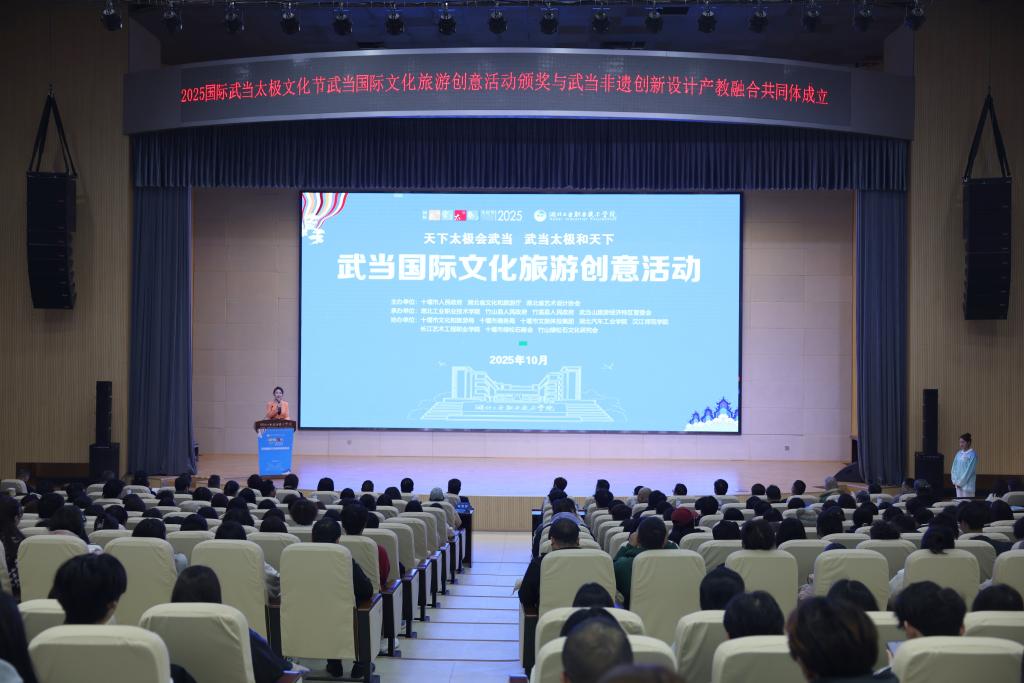 此前,本次武当国际文化旅游创意活动已开展近一个月的全球作品征集,吸引力十足,最终共收到来自中国及泰国、波兰、白俄罗斯、马来西亚、孟加拉国、韩国、阿尔及利亚7个国家的14735件创意作品。活动中,湖北汽车工业学院、汉江师范学院、湖北工业职业技术学院分别承办武当国际旅游线路设计、导游词创作、文化旅游产品创意三大项目。经过多轮专家严格评审,活动现场公布了250件入选作品,这些作品风格各异,集中展现了全球创作者对武当文化的创新表达,以及在文旅融合领域的多元探索。