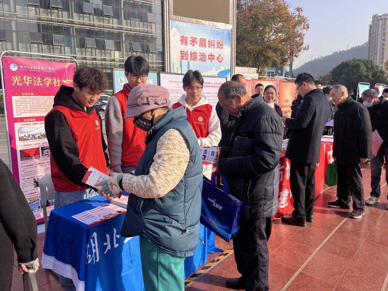 新闻网讯(通讯员 程思嘉 袁李红)为深入学习宣传贯彻党的二十届四中全会精神和习近平法治思想,12月1日上午,2025年十堰市第八个“宪法宣传周”启动仪式暨集中法治宣传活动在市人民广场隆重举行。湖北工业职业技术学院的教师代表与光华法学社的学生志愿者们积极响应,通过发放精心编制的宣传手册、为群众答疑解惑等形式以青春之力赋能普法实践,为这场全市性的法治宣传活动注入了鲜活的青年力量。