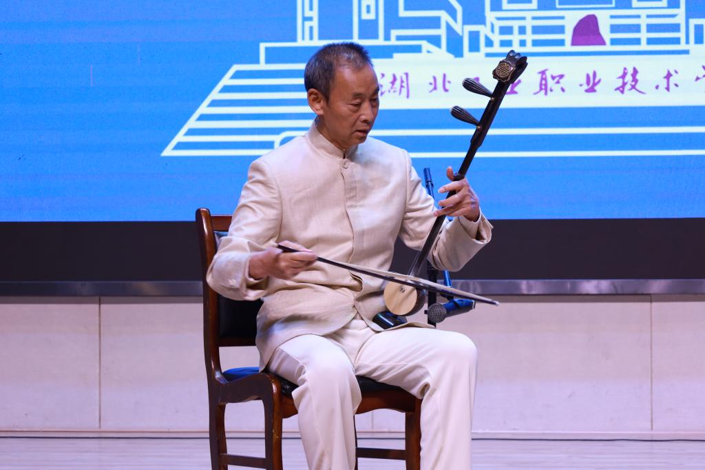 艺术展演环节车教授娴熟驾驭不同形制的胡琴,依次演绎《胡琴说》《游牧时光》《枉凝眉》《彩云追月》《滚滚长江东逝水》《友谊地久天长》等经典曲目。悠扬婉转的琴声穿透会场,不少师生闭目聆听,沉浸在音乐构筑的情感世界中。