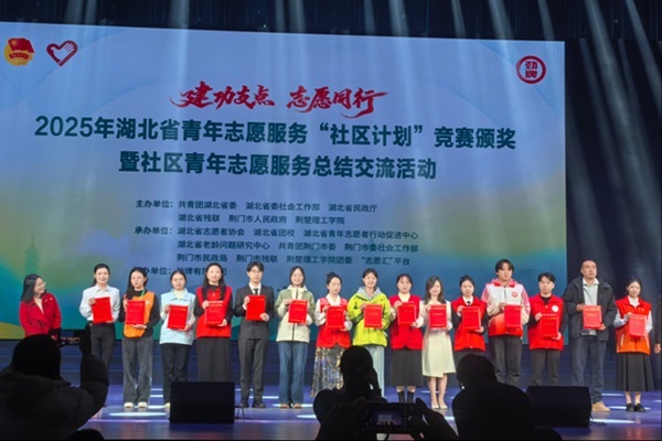 新闻网讯(通讯员 高静)12月7日,2025年湖北省青年志愿服务“社区计划”竞赛在湖北荆门圆满落幕。我校参赛团队在此次竞赛中表现优异,斩获金奖1项、银奖1项、铜奖2项,获奖等次及数量均创历史新高,是学校参与该赛事以来的最好成绩。