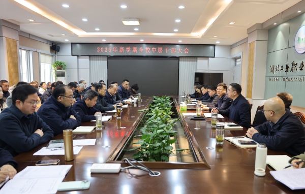 校长郑强在主持讲话中指出,边疆书记从六个方面为学校2026年工作作了全面系统务实的动员部署,边疆书记的讲话高屋建瓴,针对性强、指导性强、操作性强,充分彰显了学校在服务十堰建设鄂西区域性中心城市、服务湖北建成中部地区战略支点过程当中的责任担当,必将汇聚起全体湖北工业职院人向高而攀、再创辉煌的磅礴力量。各部门要迅速传达边疆书记讲话精神,全体师生要认真领悟讲话精神,新学期开学后迅速归心归位,以战斗姿态满格出发,洞察大势、认清形势抢抓机遇,抓住要害、以顶格标准提升质效,强化执行、锤炼作风锻造铁军,咬定青山不放松,奋力实现事业发展开门红。