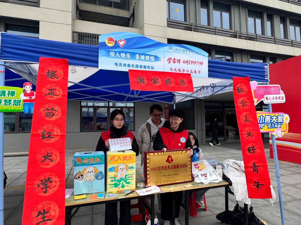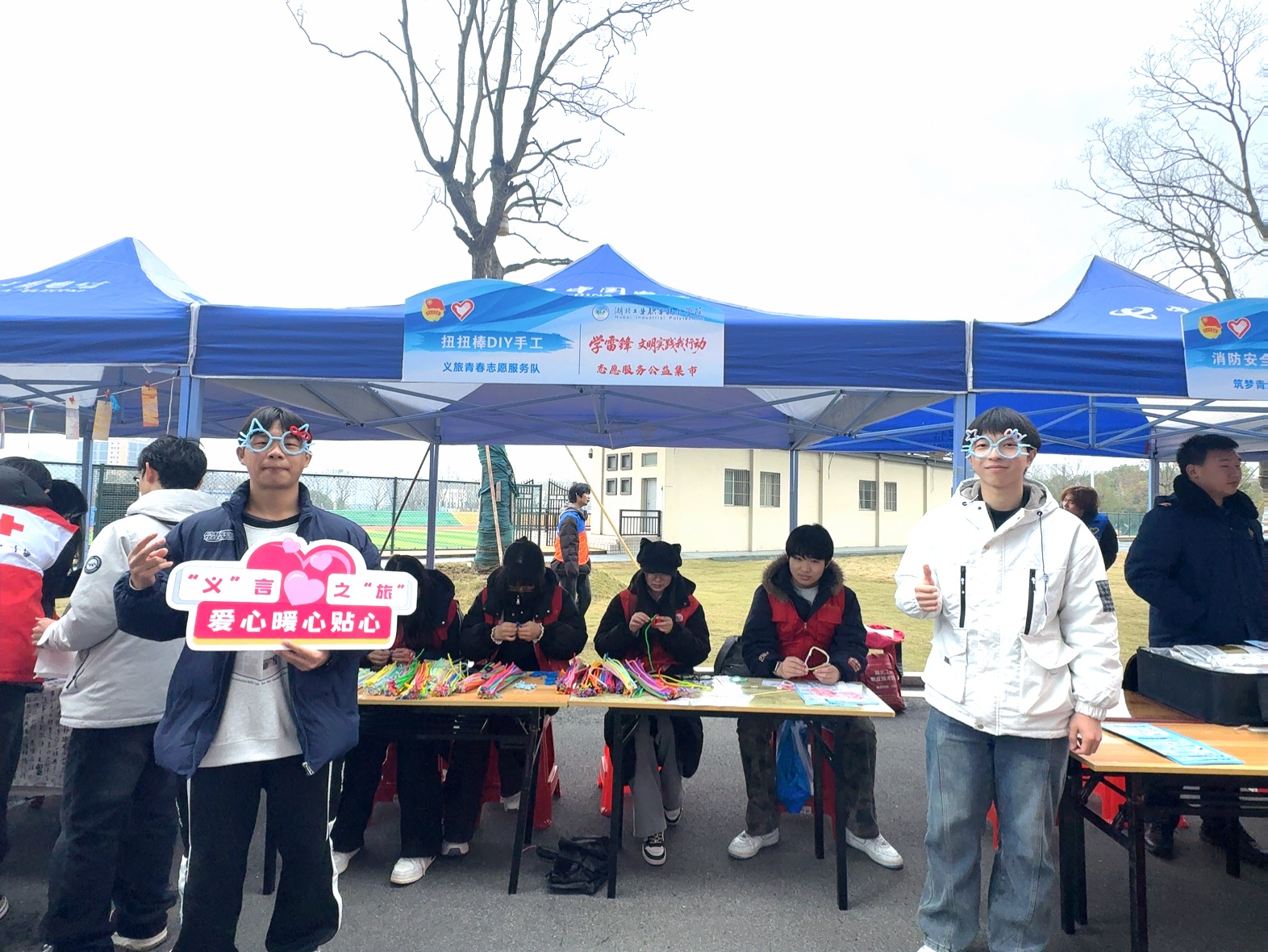 与会领导与师生代表共同参观了现场同步举行的志愿服务公益集市。集市上,各二级学院与志愿服务队纷纷亮出“看家本领”,结合专业特色开展消防器材展示、车辆检测维修、电脑系统维护、文创作品制作、反诈知识答题、无偿献血宣传、健康义诊等便民服务和互动体验,用实际行动诠释了新时代雷锋精神,也为三月的湖工职院校园增添了一抹亮丽的“志愿红”。