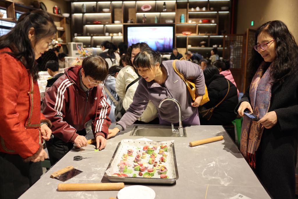 当日下午,活动安排了丰富多彩的非遗手工体验环节。在专业指导老师的带领下,女教职工们亲自动手参与制作花馍和制香眼罩。从揉面到捏花,从称香到制作,一件件精美的花馍和香气四溢的助眠眼罩,充分展现了我校女教职工心灵手巧、蕙质兰心的风采。尤为暖心的是,当天恰逢我校程亚兰教授的60岁生日,在场人员共同为她送上了真挚的生日祝福,现场充满了欢声笑语,将活动氛围推向了高潮。