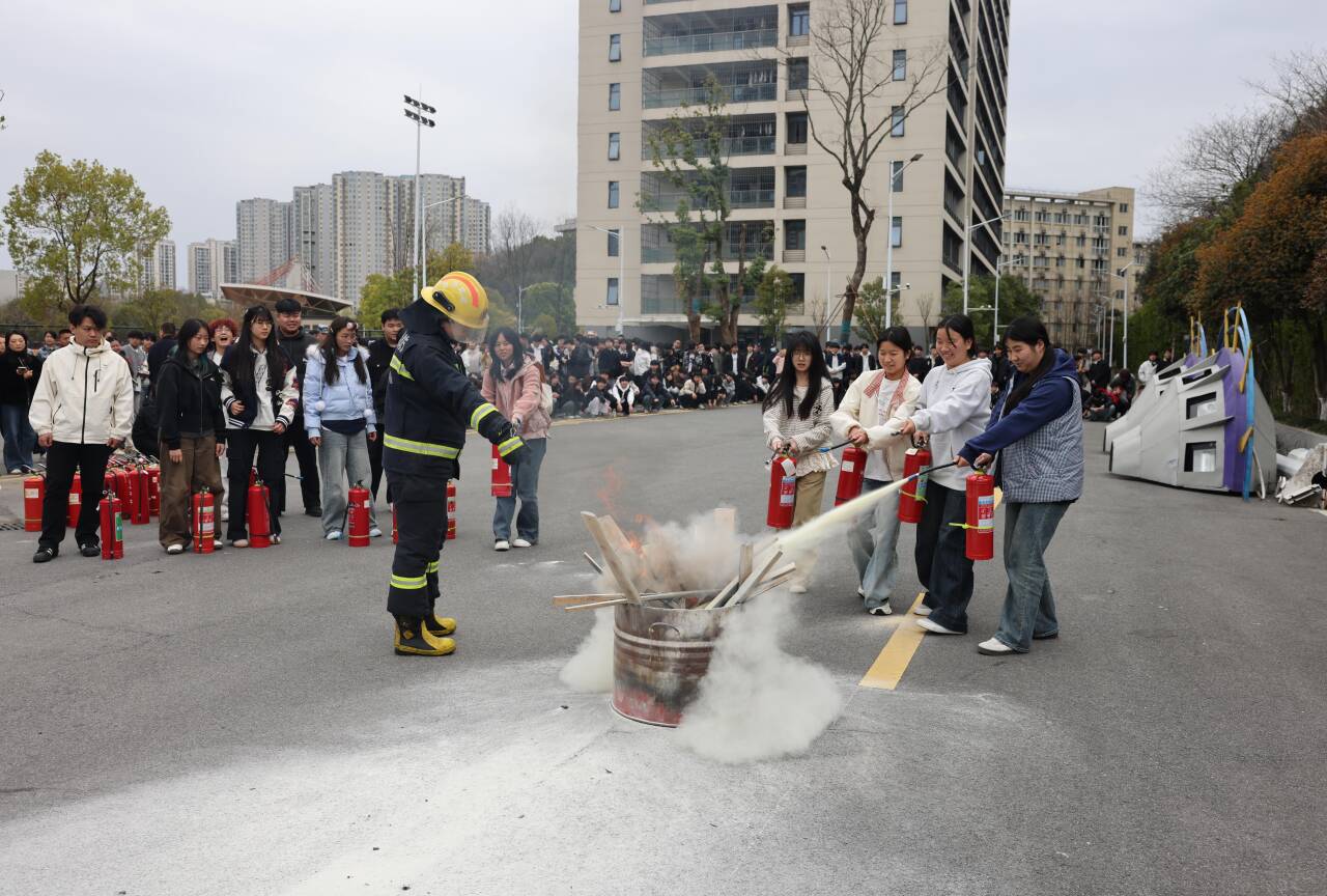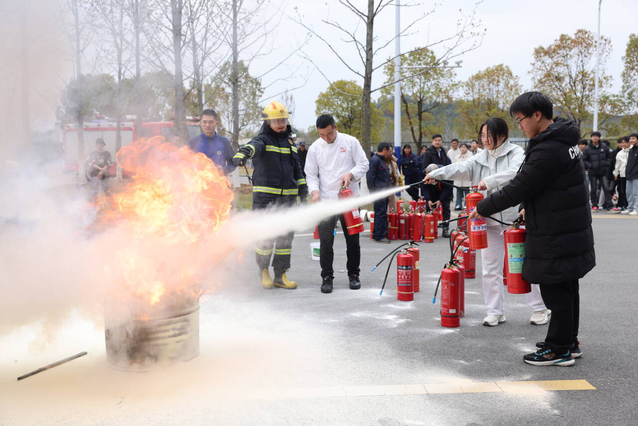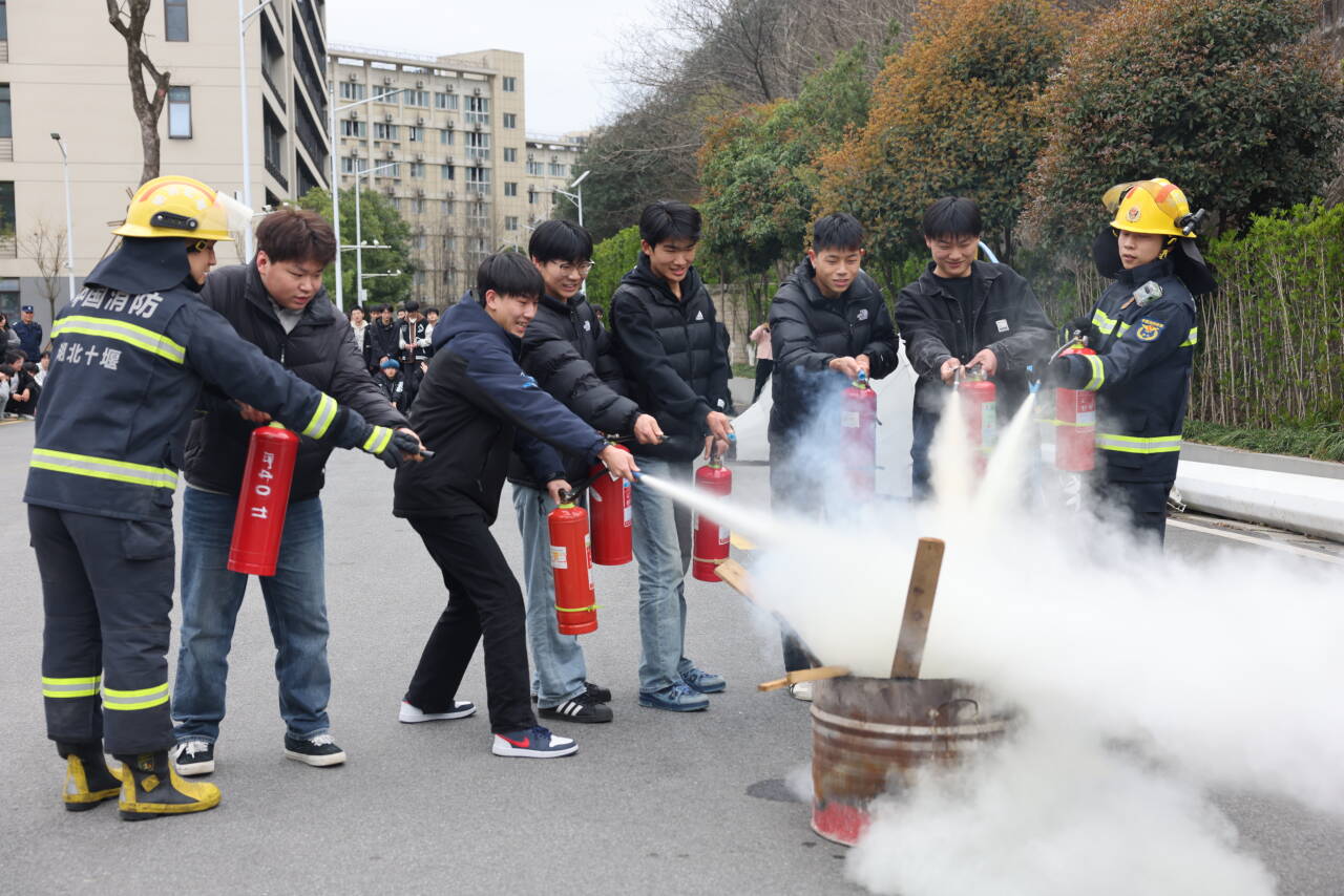 新闻网讯(通讯员 周喻)3月25日,学校联合茅箭区消防救援局开展春季消防安全培训暨实战演练,覆盖机关部门、教学单位、后勤保障、新报到3+2学生代表等300余名师生及驻校人员,通过"理论+实操+实战"模式全面强化校园火灾防控能力。