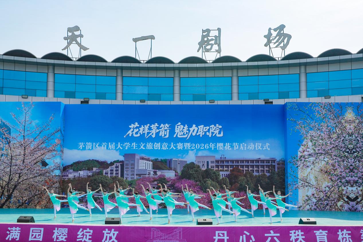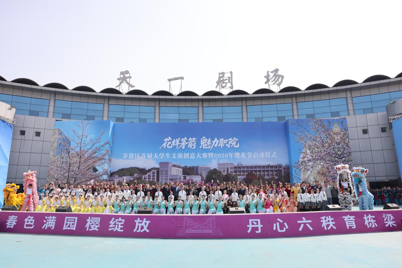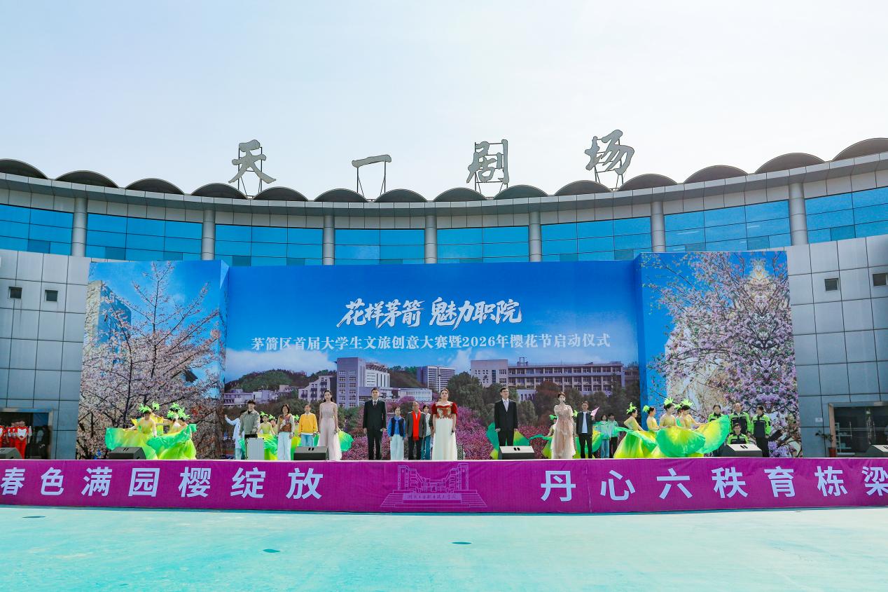 新闻网讯(文/张华雪 图/李鑫)春和景明,樱韵飘香。4月3日,“花样茅箭 魅力职院”茅箭区首届大学生文旅创意大赛暨2026年樱花节在我校天一剧场火热开场。