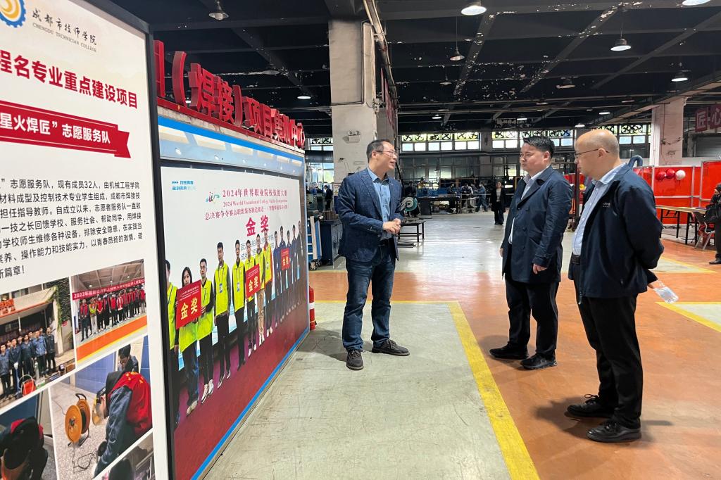 在成都工贸职业技术学院,考察组一行查看了该校“搭建‘蓉匠先锋’党建工作品牌集群 引领学校跨越式高质量发展”“搭建党员作用发挥载体 争做新时代职教先锋”等党建主题宣传展板,沉浸式参观了该校电气工程学院、汽车工程学院、机械工程学院等的实训车间、微党校学习站、机械博物馆、“专创融合·创新赋能”党员示范岗、校企联合党建阵地等,详细了解该校深化党建与业务工作深度融合、强化基层党组织“两个功能”、充分发挥“两个作用”等情况。座谈交流环节,双方围绕创建名辅导员工作室、打造党建品牌、“三建三融”党建与教育教学融合模式构建等进行了交流研讨。