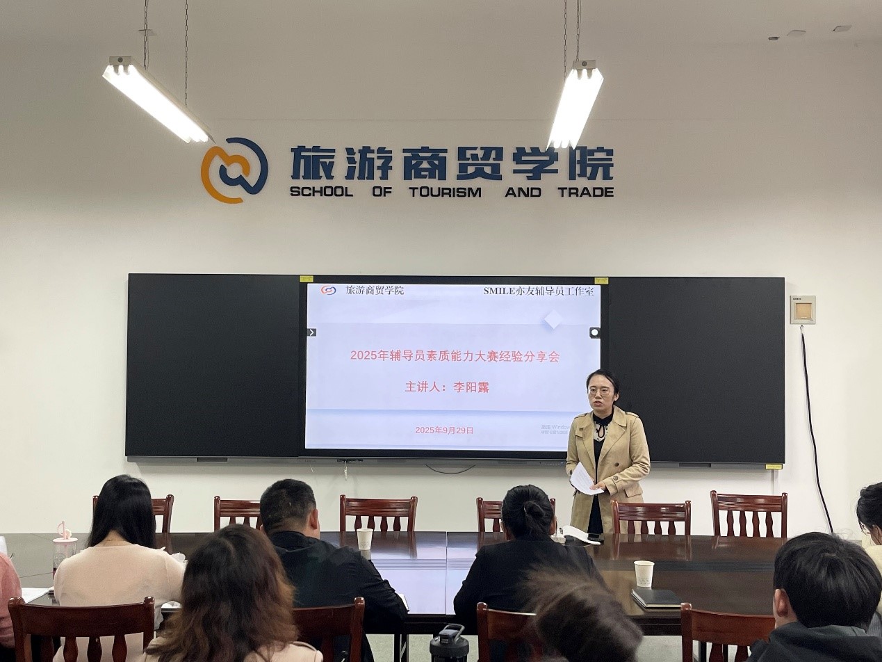 新闻网讯(通讯员 吴琦)为进一步提升辅导员的综合能力与专业素养,9月29日下午,旅游商贸学院与智能工程学院联合举办辅导员素质能力大赛经验分享会。本次活动由旅游商贸学院SMILE亦友辅导员工作室牵头组织,特邀上一届省辅导员能力大赛二等奖获得者担任主讲嘉宾。两院党总支书记、副书记及全体辅导员共同参与。