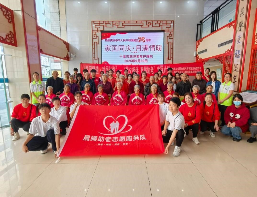 新闻网讯(通讯员王紫琳 袁李红)秋阳和煦,丹桂飘香。在国庆与中秋双节相逢的喜庆时刻,湖北工业职业技术学院晨曦助老志愿服务队的青年志愿者们走进十堰市慈济老年护理院,以一场饱含深情的慰问演出与陪伴服务,为老人们送去节日的温暖与祝福。这场以“家国同庆·月满情暖”为主题的活动,不仅是一次节日的欢聚,更成为代际情感交融、时代精神传递的生动实践。