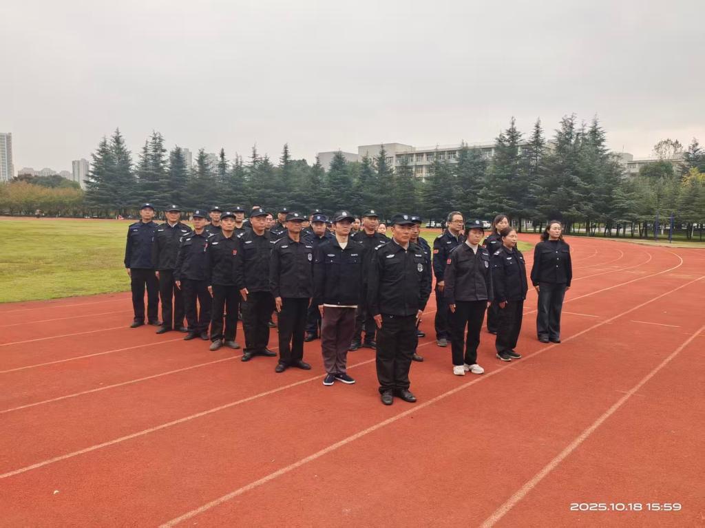 新闻网讯(通讯员 贺兴虎)10月21日,由社会培训学院主办、十堰市自强保安培训中心协办的2025年第4期保安员培训班在我校南区操场顺利完成考核,50余名来自全市各单位的在岗保安员参加了结业考试。