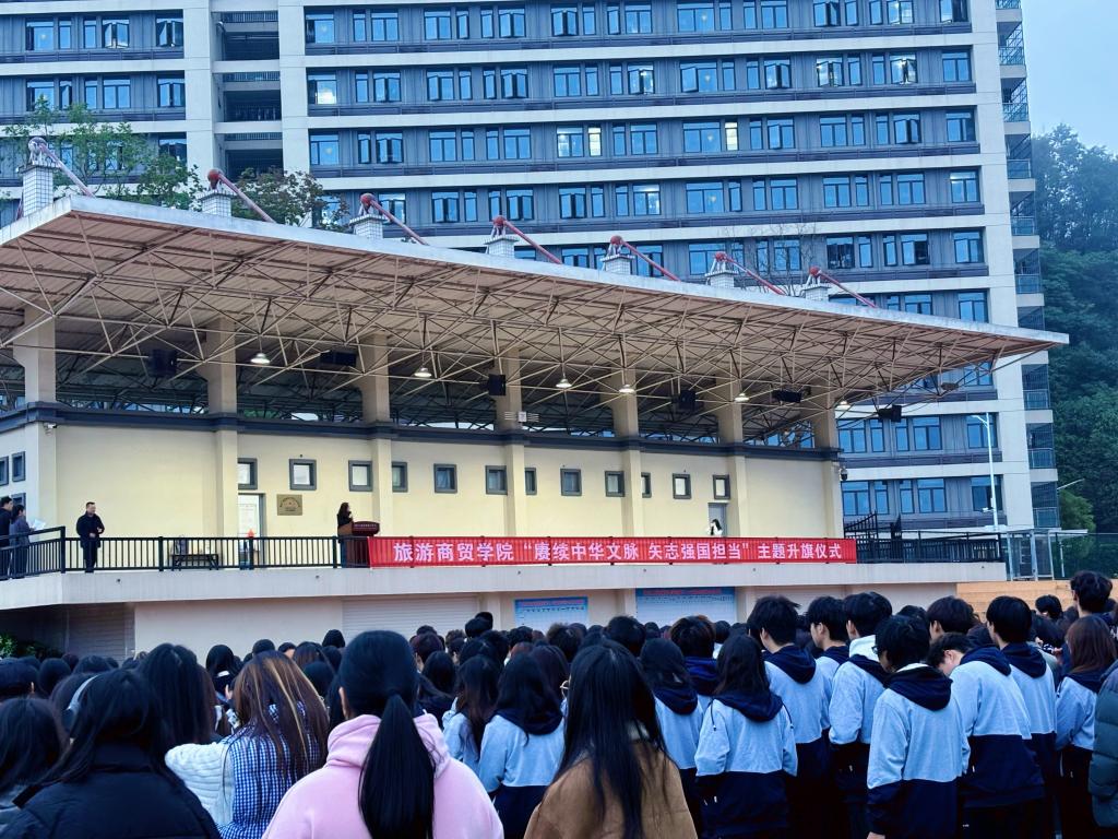 新闻网讯(文/徐诗怡/李佩莲 图/赵金璐/李梦真)2025年10月27日清晨,旅游商贸学院在北区操场隆重举行升旗仪式,同步开展“文化传承”主题读书修身表彰,将爱国主义教育与文化育人深度结合。