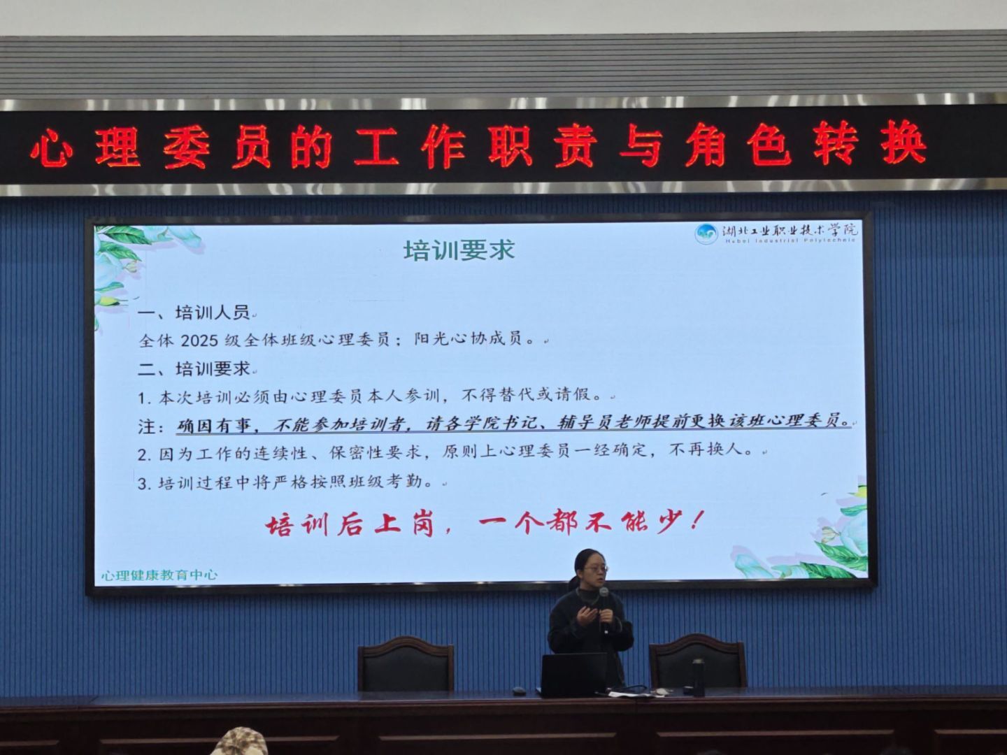 在紧随其后的专题讲座中,心理中心专职教师蔡新华首先开讲。她围绕“心理委员的角色定位与职责”进行了深入浅出的剖析,明确了“阳光种子”作为心理健康“宣传员”、危机预警“观察员”和同学身边“支持者”的三重角色,并就如何组织班级活动、填写工作月报表等实务进行了具体指导。