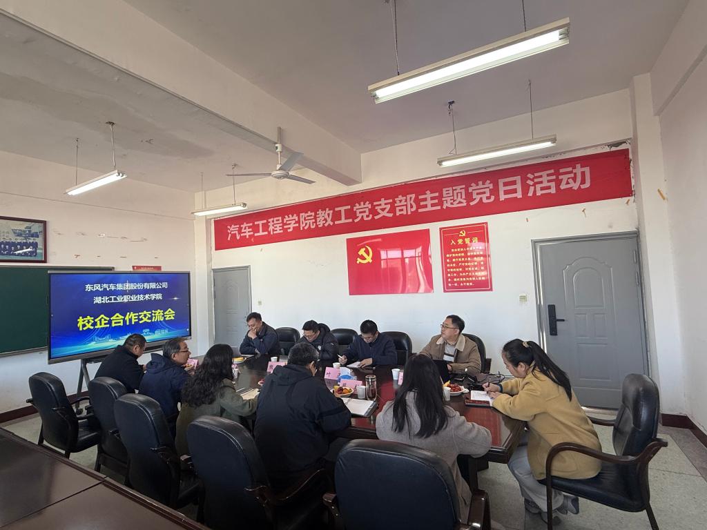 新闻网讯(通讯员 张勇)2025年11月21日上午,东风汽车集团股份有限公司与湖北工业职业技术学院校企合作交流会议在学校汽车工程学院成功举行。双方围绕深化合作内涵、拓展合作领域等议题进行了富有成效的磋商,为后续战略合作的推进奠定了良好基础。