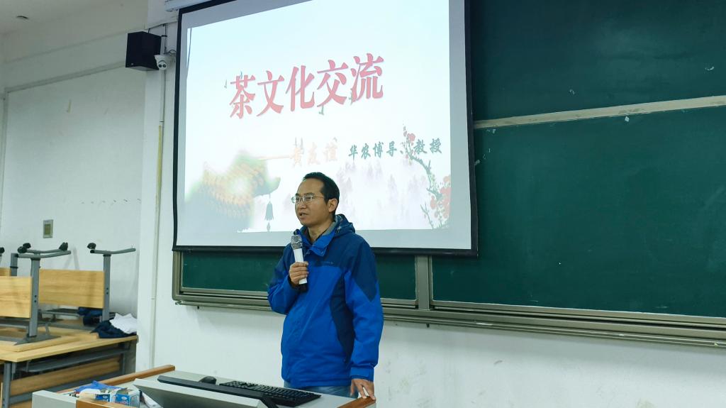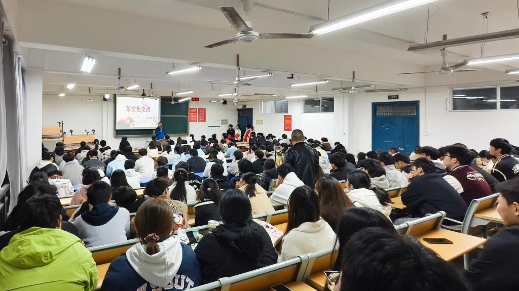 在全场热切的期待中,黄友谊教授开始了主题讲座。他凭借深厚的专业知识和丰富的实践经验,深入浅出地讲解了茶叶的科技奥秘与产业未来。从茶叶种植的创新技术到制茶工艺的科学原理,再到茶产业的市场前景,黄教授一一进行了阐释。他强调茶叶背后所蕴含的科技力量与时代责任,激发了同学们对茶文化的浓厚兴趣和深入思考。在互动答疑环节,同学们积极提问,黄教授一一耐心解答,现场洋溢着浓厚的学术氛围。
