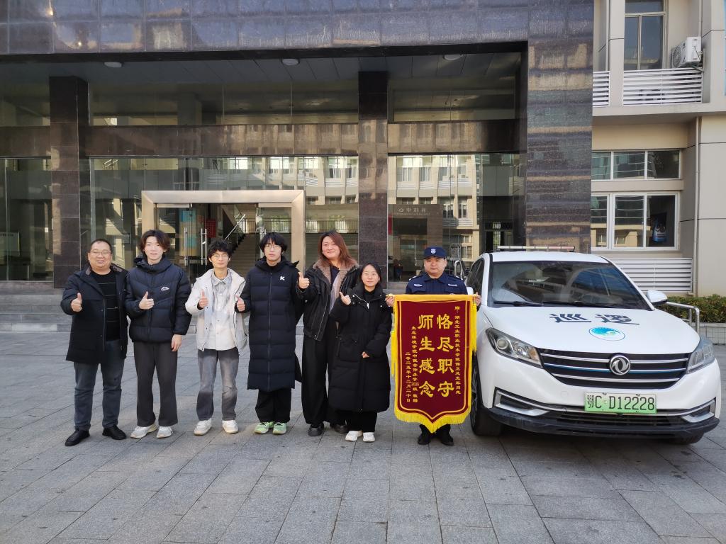 在赠送锦旗现场,辅导员和同学们表示:“王军师傅不仅认真履行安保职责,更用一次次贴心助人的举动,让大家感受到了校园的温暖!有学校保卫处和保安师傅们的守护,在夜晚的校园也格外安心。他们是我们身边最可信赖的人!”