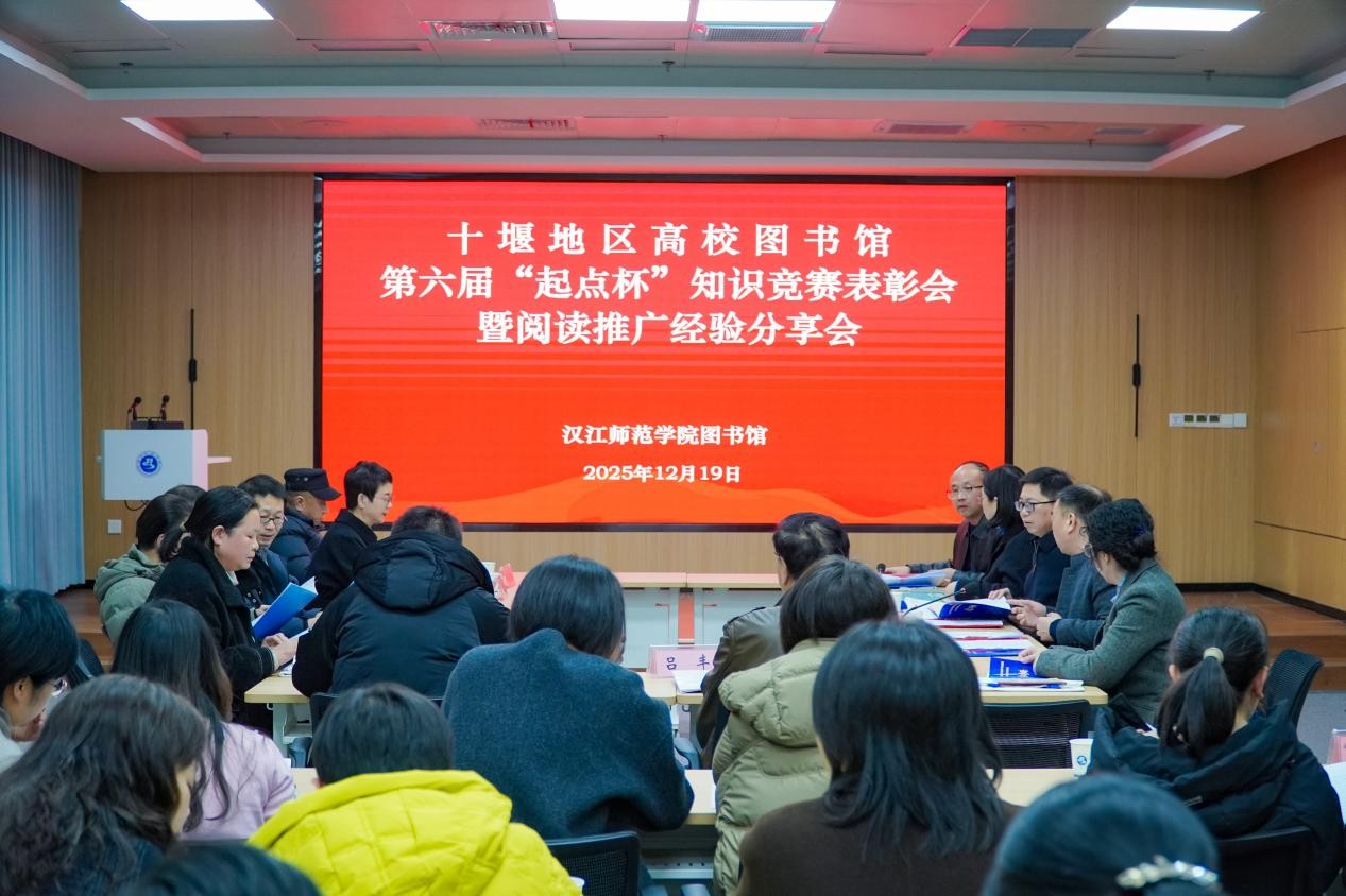 新闻网讯(通讯员薛吉涛)12月19日下午,十堰地区高校图书馆第六届“起点杯”知识竞赛表彰会暨阅读推广经验分享会在汉江师范学院举行。汉江师范学院、湖北医药学院、湖北汽车工业学院及我校图文信息中心负责人、馆员代表,与四校获奖学生代表共同参会,交流阅读推广经验,展示学子风采。