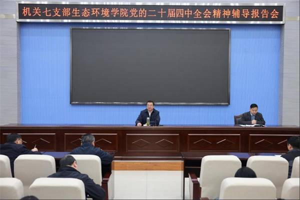 12月3日下午,校党委副书记、校长郑强在学术报告厅为机关七支部及生态环境学院党总支全体教师做党的二十届四中全会精神辅导。郑强紧扣高职教育使命与学校“十五五”事业发展规划以及“创全聚本”的目标,阐释全会精神对办学治校的实践指引。