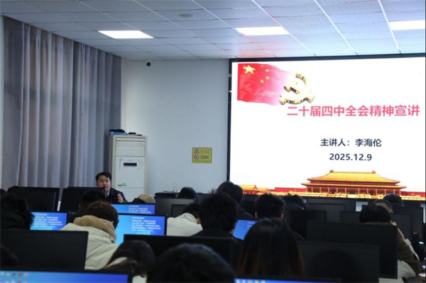 新闻网讯(文/王洁 图/李鑫)为推动党的二十届四中全会精神在校园落地生根、开花结果,切实把全校师生的思想和行动统一到党中央决策部署上来,12 月中上旬,校主要校领导班子成员纷纷深入基层教学单位、党支部,面向广大师生开展系列专题宣讲活动,以精准解读、生动阐释凝聚起全校上下共谋学校事业高质量发展的强大合力。