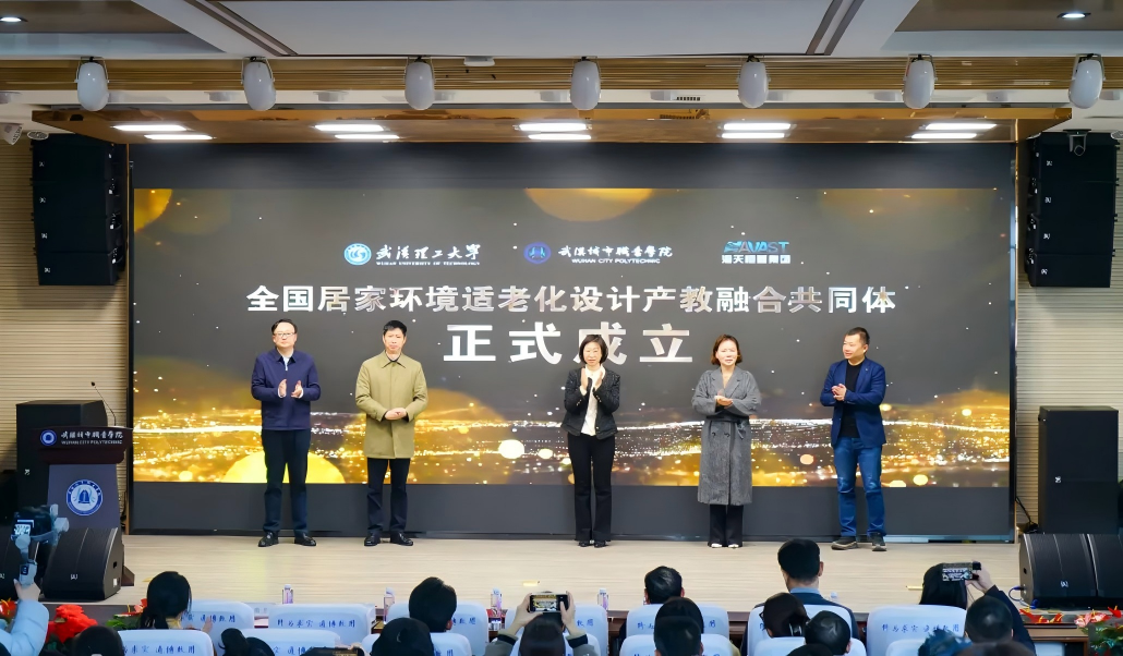新闻网讯 2025年12月26日,由湖北省教育厅、中国室内装饰协会指导,海天恒基建筑装饰工程(武汉)有限公司、武汉理工大学、武汉城市职业学院联合发起的“全国居家环境适老化设计产教融合共同体”成立大会,在武汉城市职业学院隆重举行,我校凭借在相关领域的专业积淀与育人实践,成功当选该共同体副理事长单位,旨在整合“政行企校”资源,构建人才培养、技术创新、产业服务于一体的协同平台。