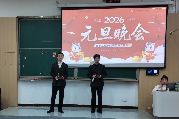 新闻网讯(通讯员 张伟 施游 方锐)岁末欢歌辞旧岁,青春筑梦启新程。12月26日晚,建筑工程学院“马跃新程 共绘精彩”主题元旦晚会在3101教室拉开帷幕。学院师生齐聚一堂,在喜庆祥和的氛围中迎接2026年元旦到来。
