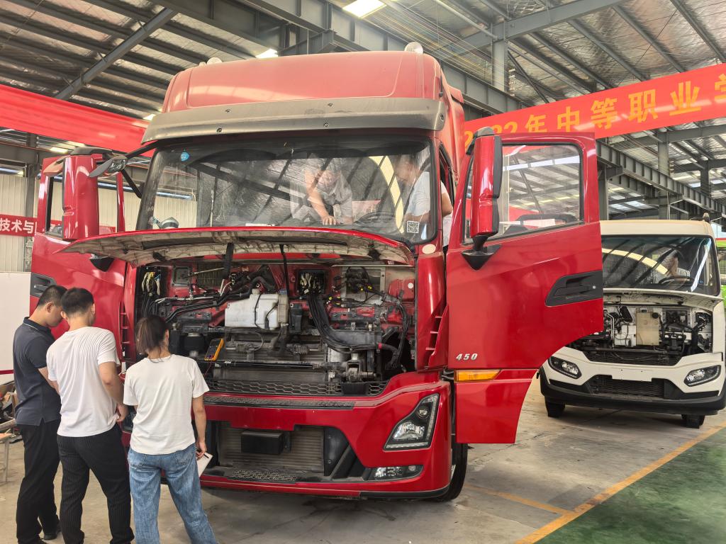 培训过程中,学院充分发挥实训资源优势,依托先进的商用车实训台架、智能诊断仪、高压安全操作实训区等教学设施,采用“理论30%+实操70%”的教学配比,让学员在模拟真实维修场景中锤炼技能。授课团队由汽车工程学院骨干教师与东风商用车技术专家、全国劳模王涛创新工作室核心成员联合组成。他们将企业真实故障案例融入教学,通过“手把手”指导、分组实操演练、故障诊断竞技等形式,帮助学员快速掌握关键技能。通过培训,学员的专业技能与服务能力得到明显提升,将为企业优化售后服务质量、降低车辆运维成本提供有力支撑。