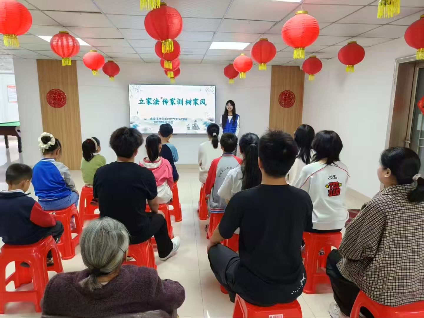 活动中,服务队注重将宏大的主题转化为孩子可感知、可参与的生动实践。通过融入家风建设、优秀传统文化及非遗体验等内容,志愿者们引导孩子们共同商讨,将孝亲敬老、勤俭节约、诚实守信等美德转化为具体行为准则。此外,文明礼仪教育、垃圾分类实践等活动也从家庭延伸至社区,让孩子们化身“文明监督员”,在服务中学习担当,理解优良家风对社区文明建设的重要意义。