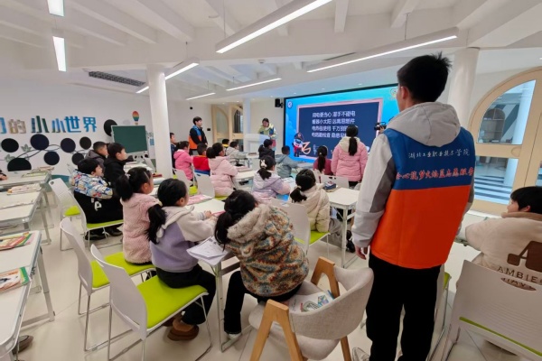 新闻网讯(通讯员 张伟 陶阳)寒假伊始,湖北省2026年寒假“爱心托管班”暨“楚小应”安全成长课项目在全省火热开展。2月3日,湖北工业职业技术学院“筑梦青春志愿服务队砼心筑梦火焰蓝分队”,积极响应湖北省志愿者协会与省应急管理厅的号召,将专业特色融入安全教育,深入十堰市郧西县城关镇多个社区托管点,为当地儿童带去了一场场生动有趣、干货满满的冬季安全知识盛宴。