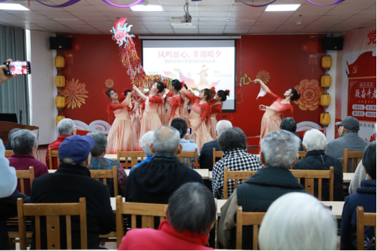 新闻网讯(通讯员 徐娇 刘姗姗)为弘扬敬老爱老传统美德,传承非遗文化精髓,2026年3月15日下午,旅游商贸学院学生党支部、分团委组织入党积极分子及晨曦助老服务队成员赴十堰太和和众养老中心,开展“凤鸣慈心,非遗暖夕”郧阳凤凰灯舞慰问活动,为院内老人送去非遗盛宴与暖心关怀。