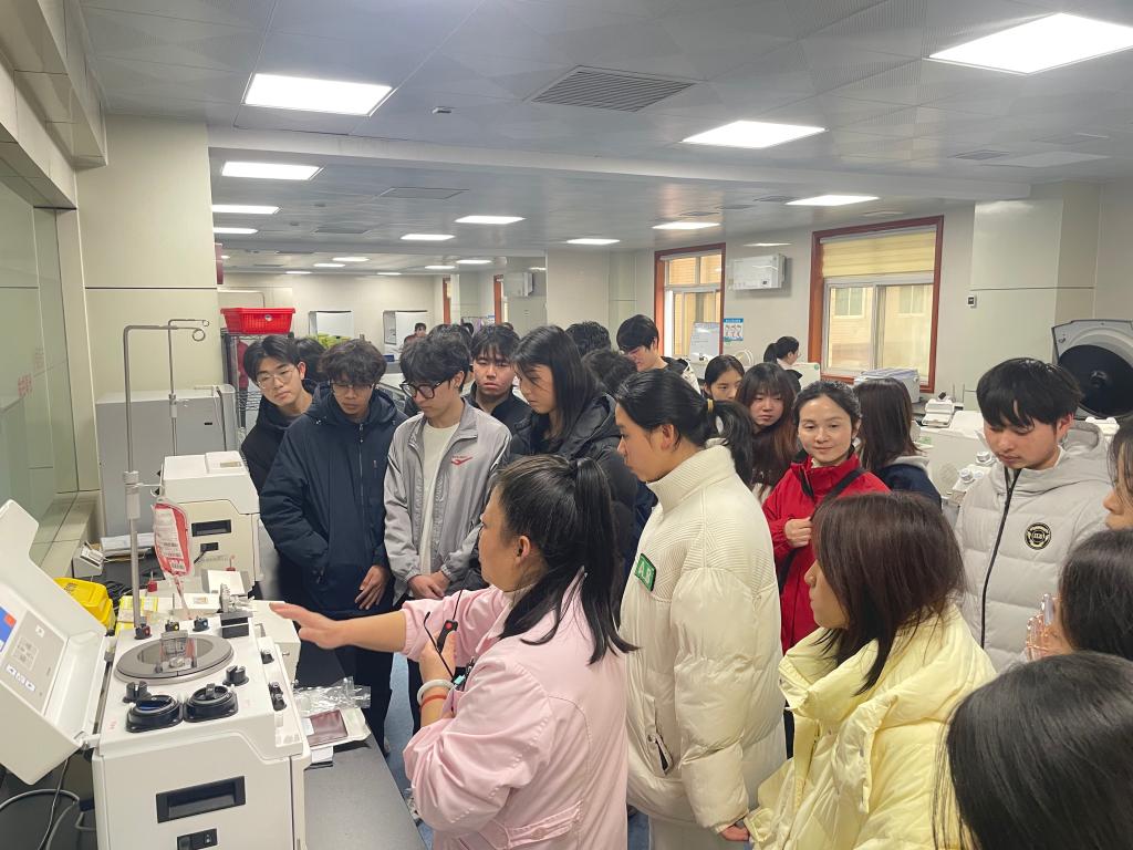 参观过程中,同学们在工作人员的引导下依次走进血液采集、成分制备、检验检测、低温储存、血液发放等核心区域,完整观摩一袋血液从采集到临床应用的全链条规范流程。同学们还结合专业学习,就血液检测技术、成分制备工艺、生物安全控制等问题与工作人员进行深入的交流,让同学们真切感受到生命科学的严谨与温度。