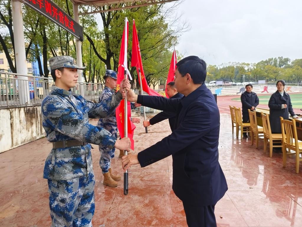 仪式最后,学校领导为参训连队授旗,一面面连旗在风中飘扬,象征着责任与荣誉的传递。授旗仪式结束后,三个连队随即分头前往运动场,正式开启为期14天的国防教育实践训练。