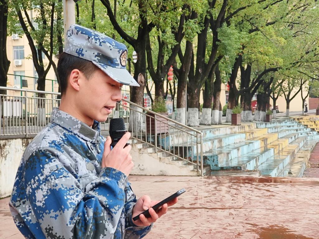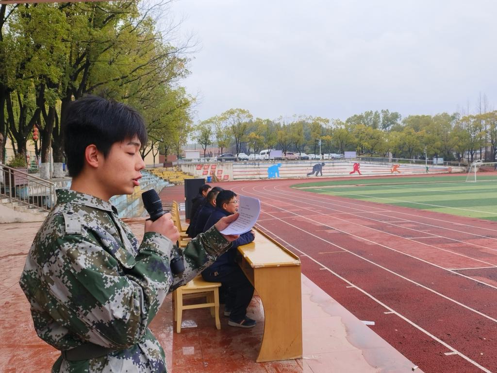 2025级环境监测专业五班陈志斌同学代表参训学生发言,他表示将珍惜此次国防教育实践机会,认真完成各项训练任务,以实际行动践行青年使命,努力成为有理想、敢担当、能吃苦、肯奋斗的新时代青年。