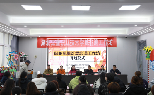 新闻网讯(通讯员 刘姗姗)3月17日上午,旅游商贸学院“郧阳凤凰灯舞”非遗工作坊开班仪式在3319会议室顺利举行。本次活动特邀郧阳区文化馆馆长田英鸥、国家级非遗传承人史清以及文化馆相关老师来校,与学院师生共同见证这一传统文化传承的重要时刻。作为学院思美文化节“礼艺修身”系列活动的重要组成部分,本次活动以党建为引领,将非物质文化遗产传承融入育人实践,旨在通过近距离接触非遗、体验非遗,增强青年学生的文化认同与传承责任感。