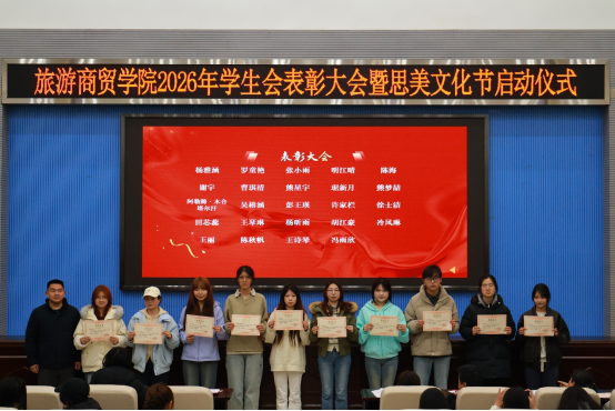新闻网讯(通讯员 高颖)3月18日晚,旅游商贸学院2025-2026学年第一学期学生会总结表彰大会暨思美文化节启动仪式在学术报告厅举行。学院领导班子、辅导员及学生代表齐聚一堂,共同回顾奋进足迹,开启以文化人、以修立身的新篇章。