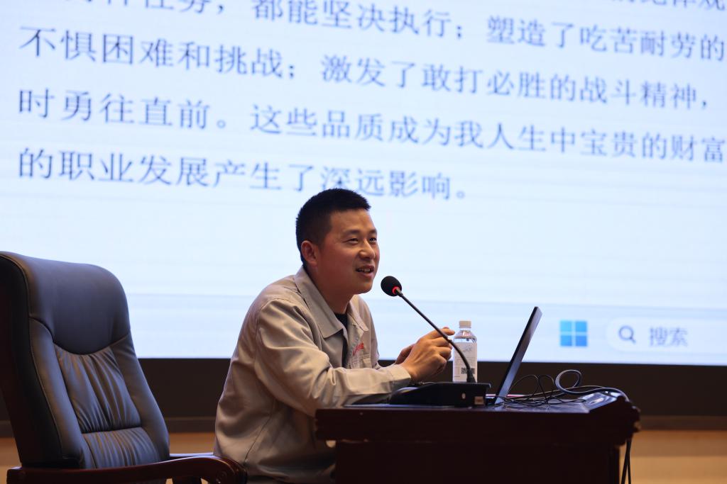 石校坤以《匠心筑梦・技能报国》为题,结合自身成长经历作专题分享。他从职校学徒成长为行业技术骨干,从军旅砺志到车间深耕,用十五年坚守一线的经历,讲述了从技术归零到攻克难关、从维修实操到技术创新的奋斗故事。他深耕汽车维修领域,累计维修车辆近3万台,攻克疑难故障1000余起,牵头研制改进汽修工具60余件,3项成果获国家实用新型专利;他屡获省市及国家级技能大赛桂冠,始终秉持“家一样的关怀”服务理念,积极投身公益事业与技术传承,用实际行动诠释新时代工匠精神的深刻内涵。他勉励同学们立足专业、勤学苦练,把平凡岗位做到极致,以技能成就梦想、以匠心报效祖国。