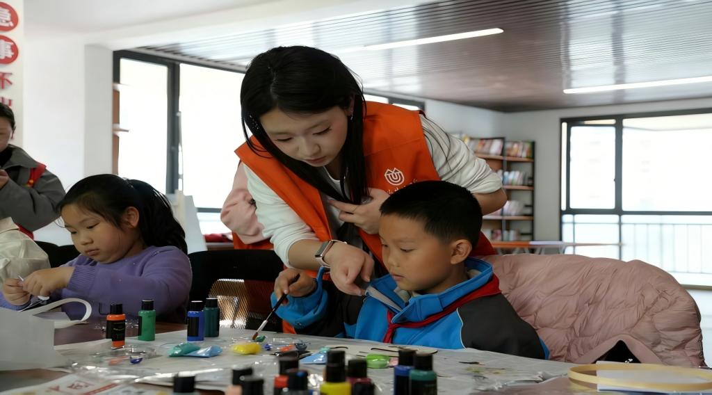 活动现场,志愿者们精心布置了五大互动区域。“春日留影”定格邻里笑脸,“情绪站”引导居民交换心情、传递温暖,“爱书护书”行动培养孩子们珍惜书本的习惯,而“春日风铃”与“春字吊饰”手工DIY则让家长与孩子在协作中感受春意。志愿者们分工协作、热情引导,将服务送到居民“家门口”,让公益集市既有“趣味”更有“温度”。