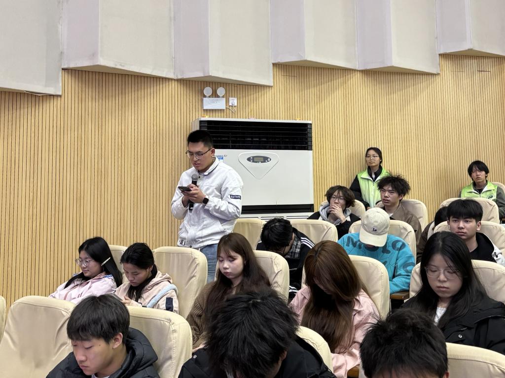 观影结束后,活动现场还组织了感悟分享环节,师生们围绕影片情节、人物精神展开热烈交流,结合生态环境专业特色,探讨如何传承先辈奋斗底色,深耕专业本领、践行守护绿水青山的使命。2025级学生王强在交流环节中发言道"主人公本只求安稳度日,静心做事,却在国家危难之际,放下小我,挺身而出让人读懂平凡中的伟大,也更加珍惜如今的和平岁月"