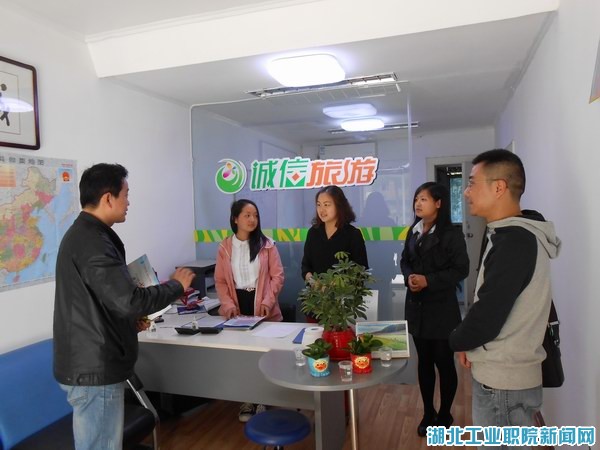 在长江海外国旅、诚信国旅、蓝天航空旅行社、湖北海外国旅、同程国旅等旅游企业,系主任王燕、专职教师司兴政等逐一了解学生学习状况、带团收获、存在的困难等,征求企业对实践教学的意见,收集了兼职教师的建议,叮嘱旅行社加强安全管理,严格要求学生,保质保量完成教学任务。