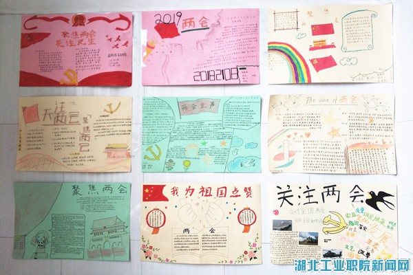 智能工程学院组织1084名在校生通过多种形式关注“两会”的召开,以学生党支部、团总支和各班团支部为学习“枢纽”,串联全体学生形成学习网络。学生们就“5G”、“人工智能”、“新一代无线通信网络”、“职业教育”等与学习生活相关的热点话题展开互动交流,并将自己的学习心得以手抄报的形式展示。本次手抄报共展出百余幅优秀作品,体现出了青年学生自觉关注祖国发展的良好风貌。