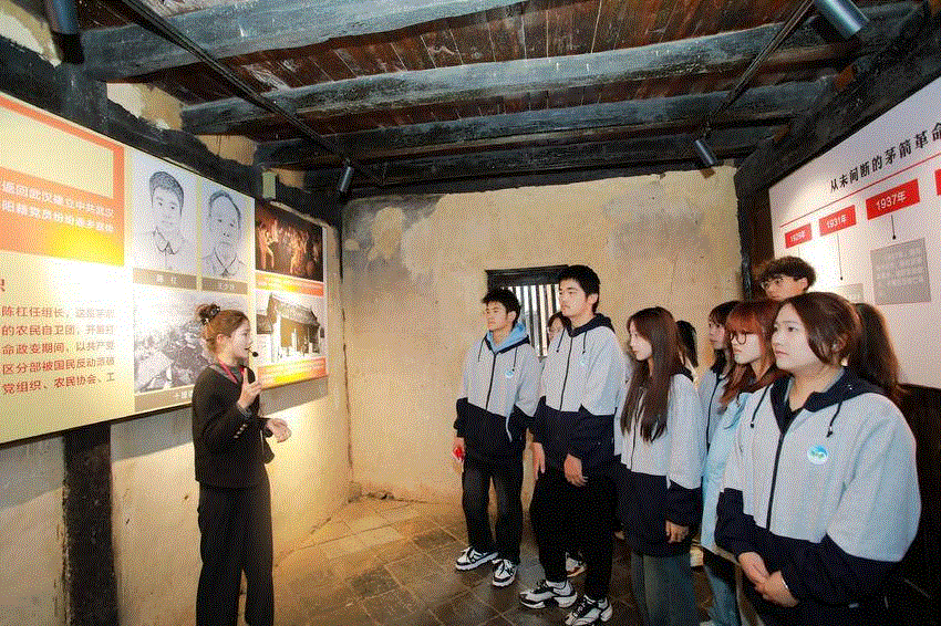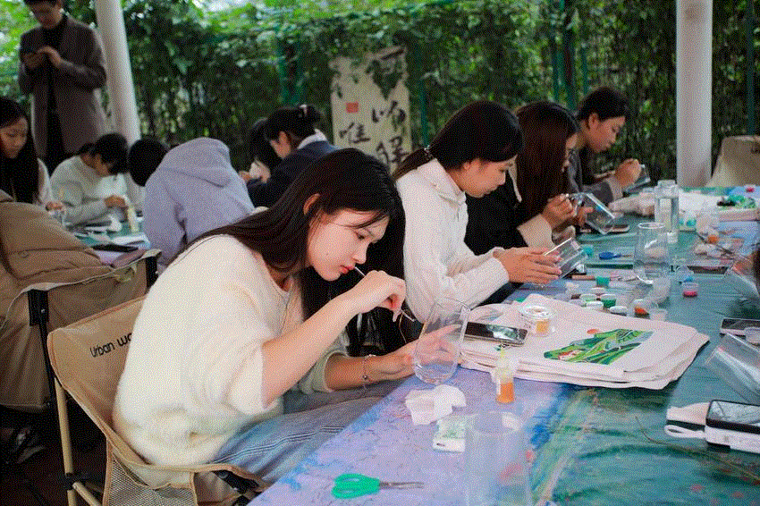 “红色铸魂・绿色赋能・匠心筑梦”线路,师生们在茅箭区东沟红色教育基地革命烈士纪念碑前举行缅怀仪式,并参观中原突围鄂西北历史纪念馆,追寻红色足迹,筑牢信仰根基。随后,队伍走进大坪村乡村振兴示范点实地调研特色产业,与“新农人”座谈,并结合专业知识为该村设计具有可行性的《乡村振兴倡议书》。下午,学生们在忆乡坪文旅产业园学习优秀扶贫干部黄星的先进事迹,并通过非遗手工实践将思政教育感悟与艺术创作相结合。