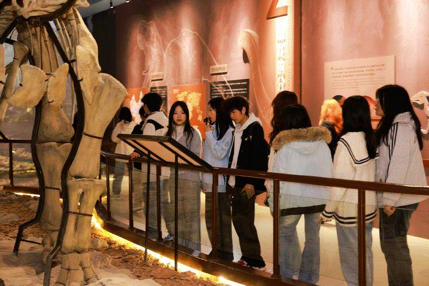 “探寻文明根脉,赋能乡村振兴”线路前往郧阳区。在郧阳区博物馆,学生们聆听了“郧县人”头骨化石故事,了解远古人类在汉江流域的生产生活状况,厚植文化自信。在龙韵新村,学生们参观了新村风貌和特色产业,分组采访了村干部、返乡青年和普通村民,并为龙韵新村的发展提出创意构想。下午学生们在郧阳恐龙蛋化石群国家地质公园探索自然,加深了对“人与自然和谐共生”生态文明理念的理解。