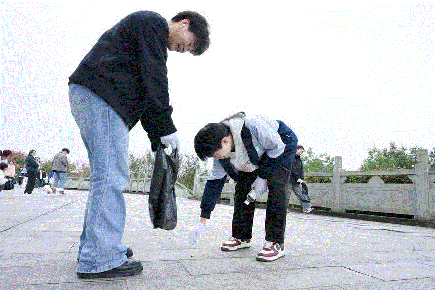 “守护生命之源,感悟家国情怀”线路前往丹江口市。学生们在丹江口大坝聆听了大坝“长高”的故事,并亲手进行水质检测小试验,了解了丹江水库建成的艰难历程与科技成就。下午,学生们在南水北调中线工程纪念园沉浸式学习移民故事,感悟“舍小家、为大家”的奉献精神。活动最后,学生们在“碧水蓝天”景区开展“清岸行动”志愿服务,并举行了“请党放心,护水有我”的青春誓言宣誓仪式。