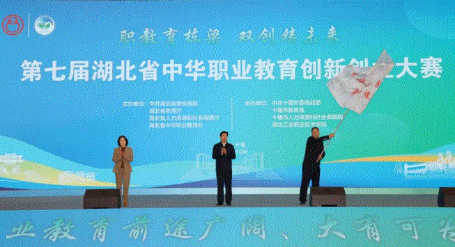 湖北工业职业技术学院党委副书记、校长郑强作题为“校地共生 同向奔赴”职业教育服务地方发展的工作报告;全国劳动模范、湖北工业职业技术学院毕业生、往届获奖项目落地转化负责人、十堰市张湾区柏林镇秦家坪村党支部书记余盛林作《老母荒百年老茶扶贫推广》项目展示;湖北工业职业技术学院自编自演的《中华情》及《为爱留下》留堰就业情景剧,获得与会领导、市州代表和参赛师生的热烈掌声。现场还进行了赛旗交接仪式,第八届湖北省中华职业教育创新创业大赛将在黄冈市举办。