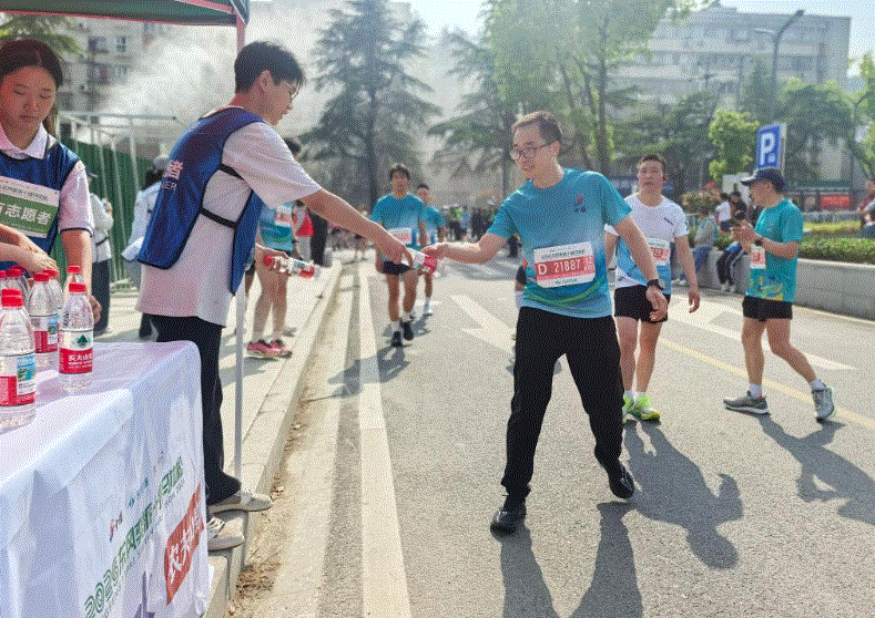 清晨,该校志愿者早早集结,奔赴半马终点——东风汽车博物馆。抵达后,大家迅速投入赛前准备,分布在龙门区、计时区、分流区、拉伸区等点位,有序开展运动员分流、计时协助、成绩抄录、赛后拉伸按摩、乘车离场指引等工作。从清晨到午后,志愿者们连续服务近10个小时,确保了半马终点各环节衔接顺畅。